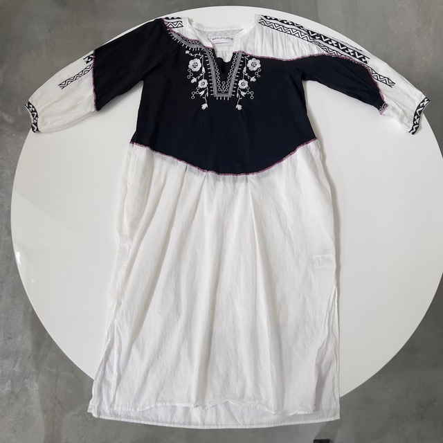 UNMELTABLEは、リサイクル・リユース材料からつくるお洋服のブランドです。 材料となるお洋服は多くの場合同じものがない為、UNMELTABLEのアイテムは全て一点ものです。 〰〰〰〰〰〰 〰〰〰〰〰〰 素材 最後の画像参照 サイズ Mサイズ 着丈 122 脇下身幅 47 ウエスト幅 38 裾幅 125 肩幅 35 袖丈 右60 左 55 ※サイズ違いによる返品はお受けできかねます。お手数ですが、上記実寸をご自分のお手持ちのお洋服と測り比べてからご購入下さい。 着用モデル153cmです。 〰〰〰〰〰〰 お取り扱い注意 ・この製品は古着又は在庫品をリユースした製品の為、仕上りが1点ごとに異なります。リユースの生地の特性上、汚れ・傷みがある場合がございます。材料の特性上としてご了承下さい。 ・素材・染色(特にデニム・濃色)の特性により摩擦や汗・雨などにぬれると淡色の衣類やバッグ・ベルト・車のシート等へ色落ち・色移りすることがありますのでご注意下さい。 ・直射日光や蛍光灯の長時間照射により色あせ・変色する事がございますので着用・保管の際にはご注意下さい。 ・洗濯又はクリーニングの際は、洗濯表示の記号をご確認の上お願い致します。 ・飾り縫いにナイロン製の糸を使用しております。中温以上のアイロンをあてると溶ける可能性がございます。アイロンの際はあて布を使用して下さい。 ・タンブル乾燥・漂白剤は使用しないで下さい。 ・織目の粗い生地・飾り縫い・刺繍部分は引っ掛けが生じ易い為、着用・着脱の際に時計・アクセサリー・ベルトなどの突起物に引っかからないようご注意下さい。 ・刺繡・レース・チュール使用製品は装飾部分へのアイロンがけはお避け下さい。また、装飾部分に過度な力が加わると生地が破れる可能性がございます。 ・装飾部分への汚れや汗の付着はなるべく早く除去してください。 ・スリット糸(ラメ糸)使用製品は、スリット糸が直接体に触れると体質によりかゆみ・かぶれなどが生じる場合がございます。皮膚に異常を感じた場合はご使用をお止め頂き、専門医にご相談下さい。 ・スリット糸を使用している製品はドライクリーニングをお避け下さい。ドライクリーニングする必要がある場合は、石油系の溶剤で短時間(1分)洗いをして下さい。