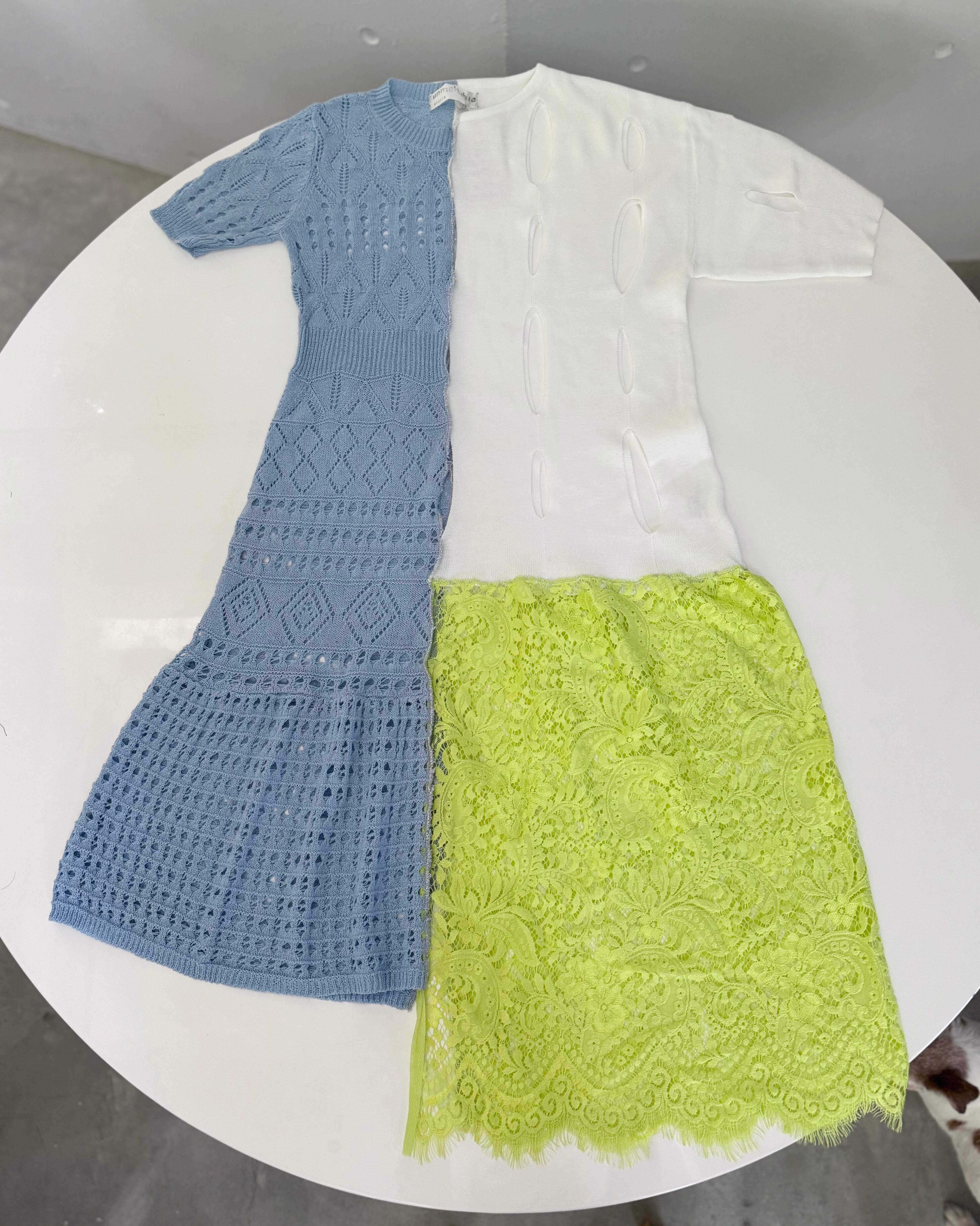材料となるお洋服は多くの場合同じものがない為、UNMELTABLEのアイテムは全て一点ものです。