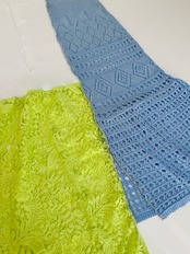 ・スリット糸(ラメ糸)使用製品は、スリット糸が直接体に触れると体質によりかゆみ・かぶれなどが生じる場合がございます。皮膚に異常を感じた場合はご使用をお止め頂き、専門医にご相談下さい。