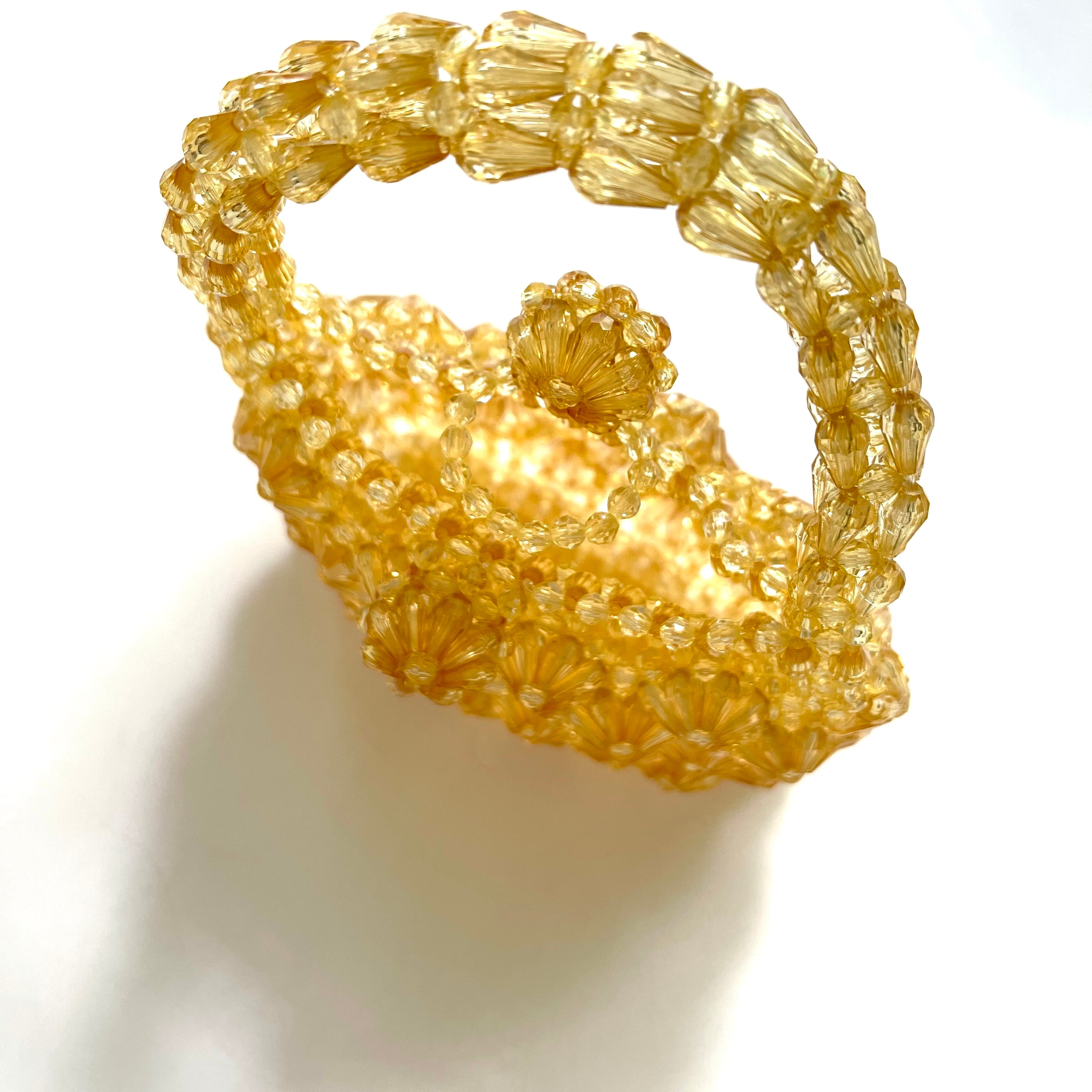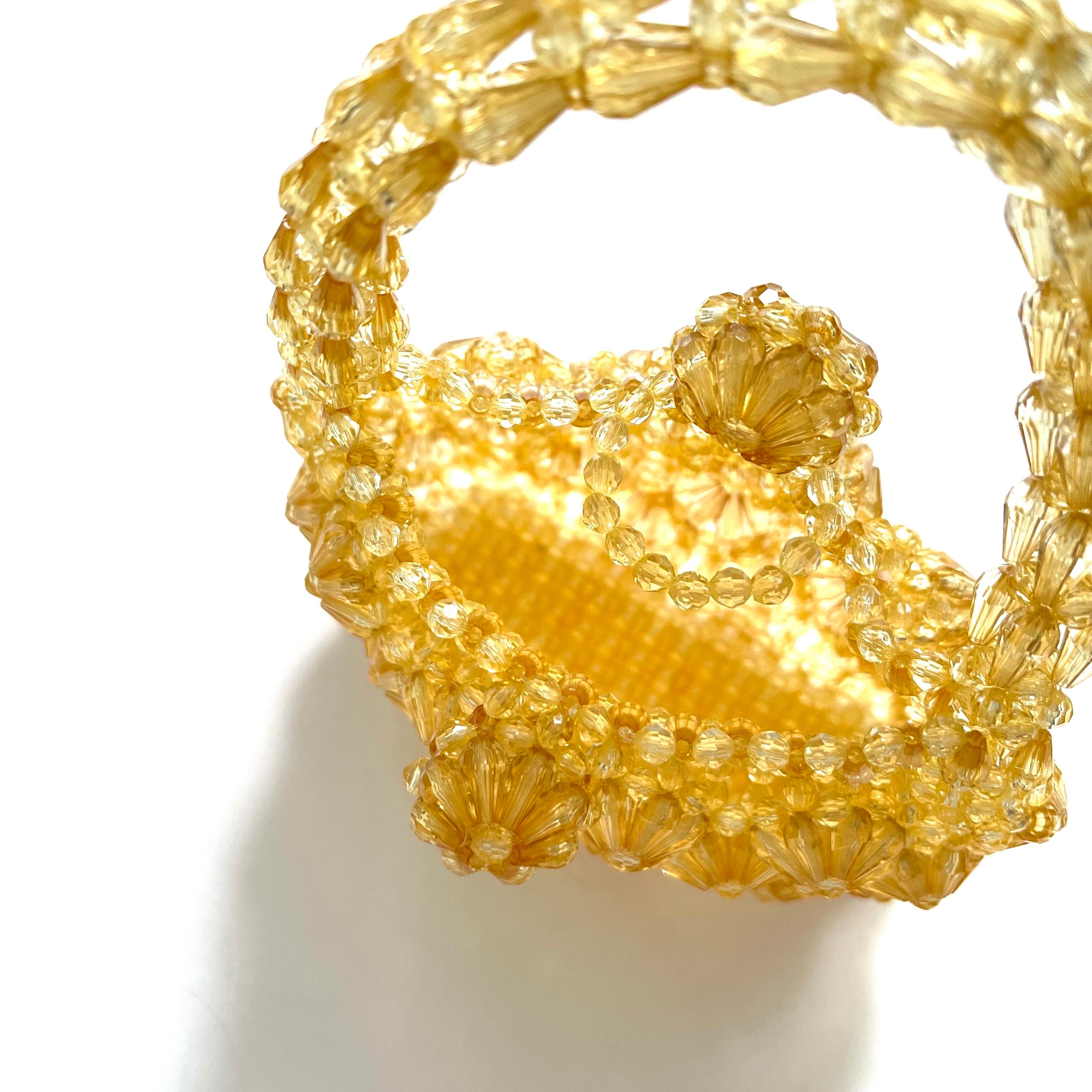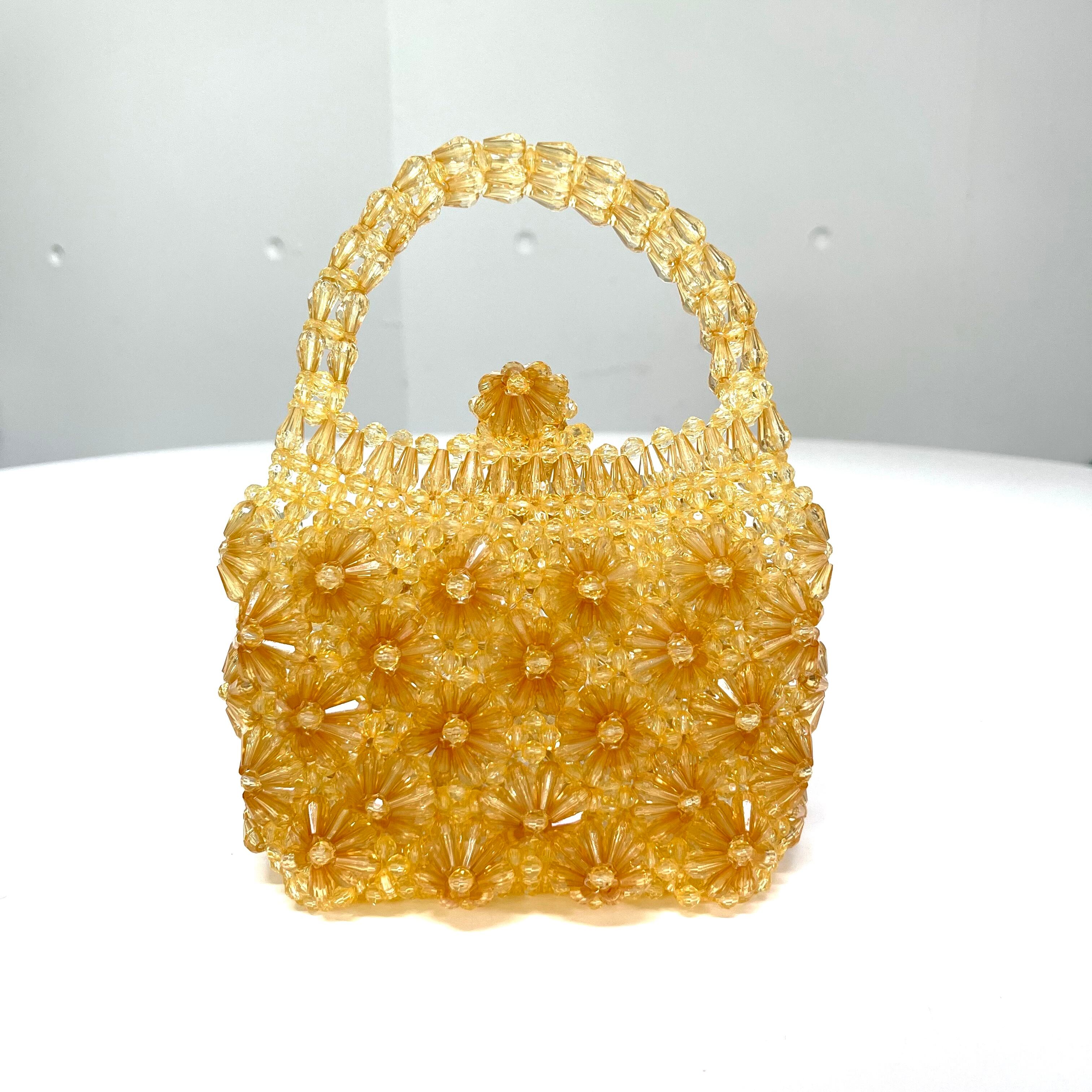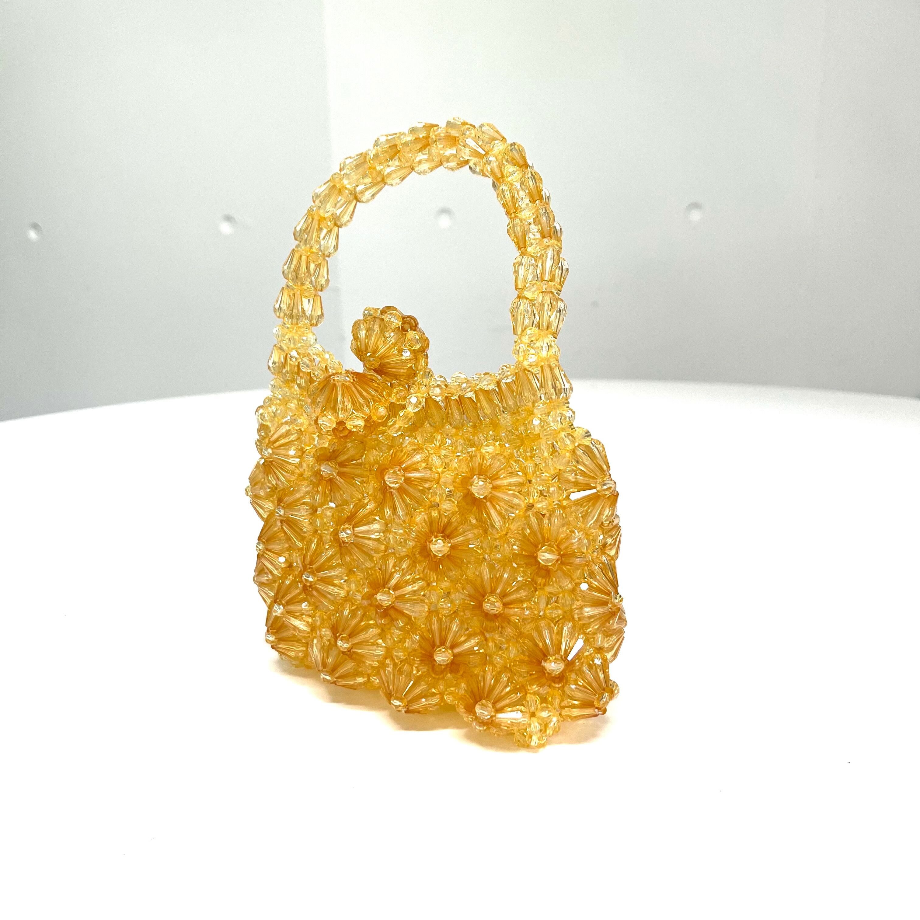 ちょっとレトロなゴールドカラーの、シャンデリアのように複雑なお花模様が美しいビーズバッグ。
