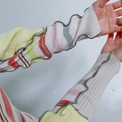 ・スリット糸(ラメ糸)使用製品は、スリット糸が直接体に触れると体質によりかゆみ・かぶれなどが生じる場合がございます。皮膚に異常を感じた場合はご使用をお止め頂き、専門医にご相談下さい。