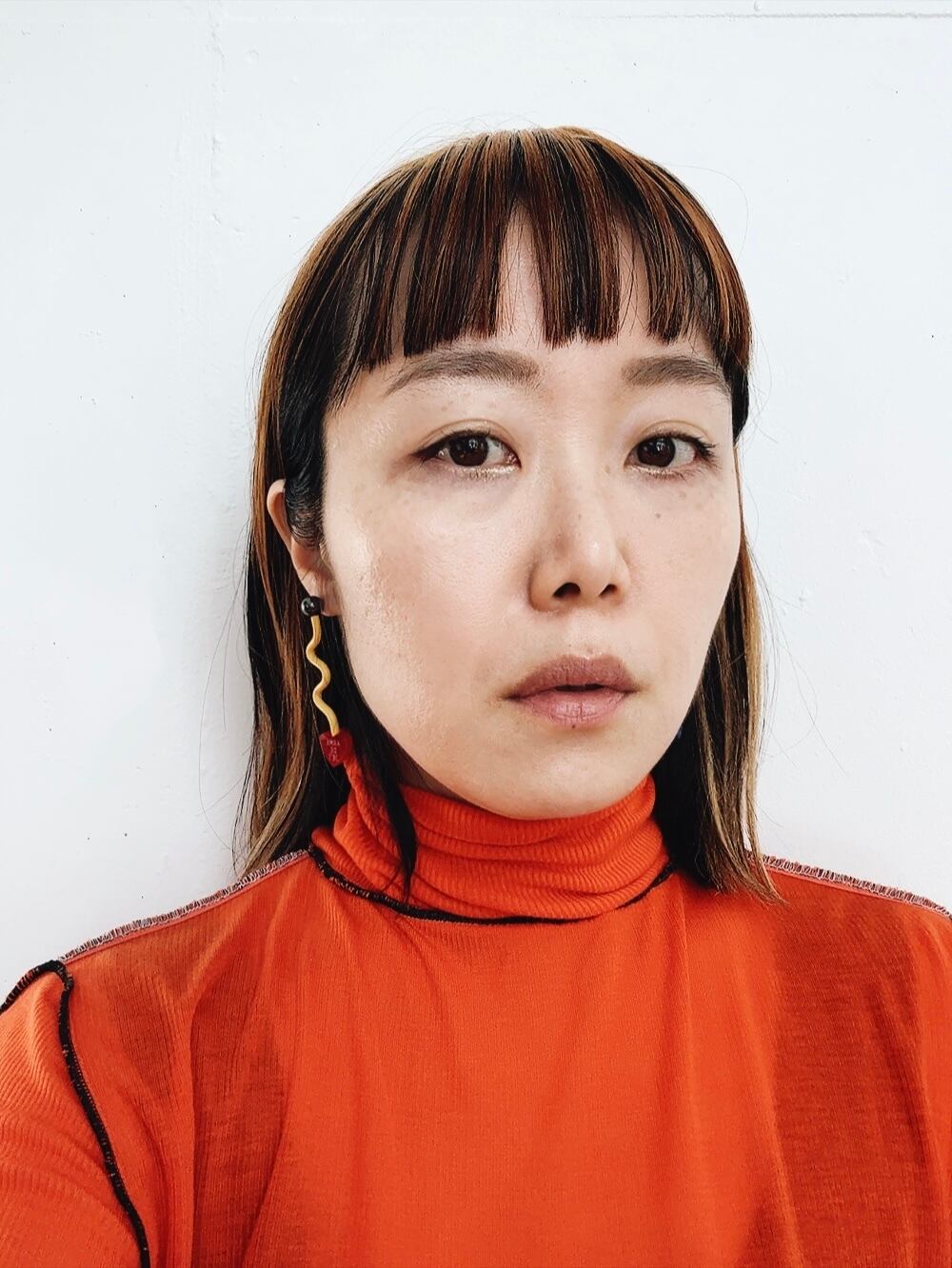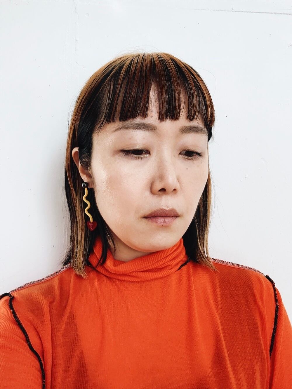 朱色までいきませんが、濃いめのオレンジです。